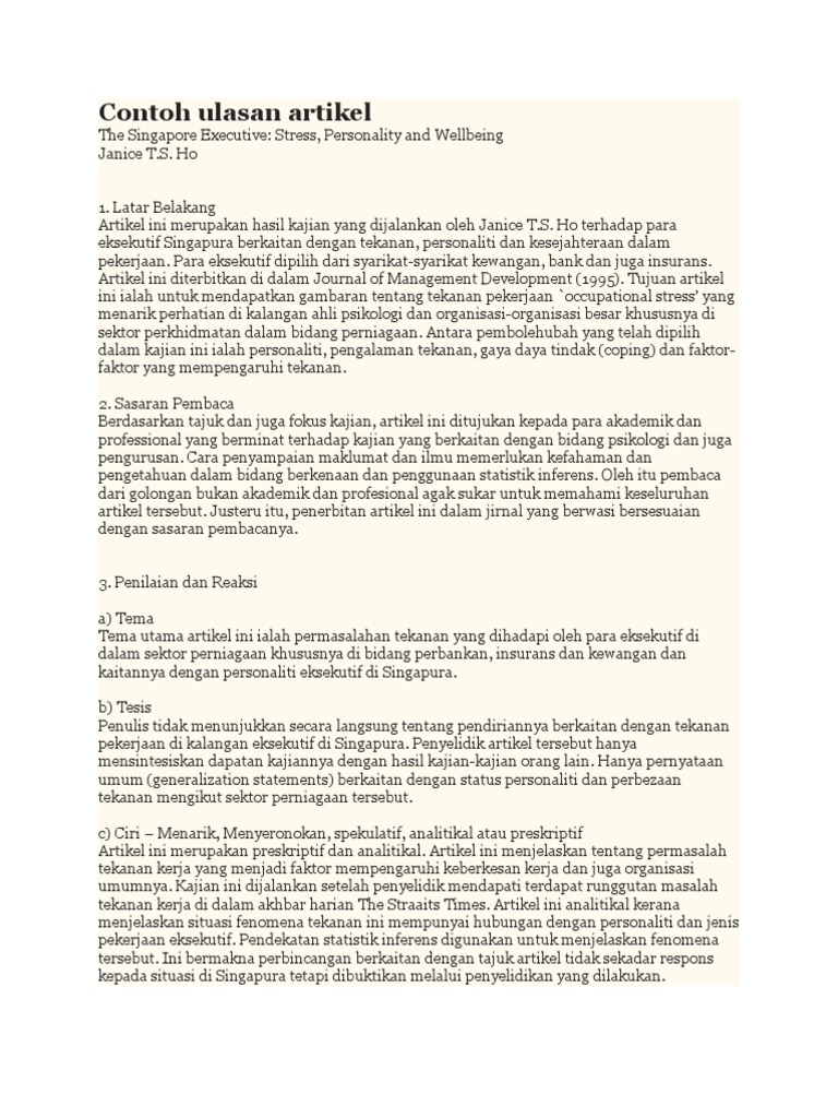 Http Ejournal Ukm My Mjc Article Download 17014 7692 from Sikap kritis seseorang terhadap sebuah karya milik orang lain bisa dituangkan dalam sebuah tulisan yang bermutu. Latar belakang artikel ini merupakan hasil kajian yang dijalankan oleh janice t.s. Secara pengertian artikel ilmiah merupakan tulisan dengan bentuk ulasan yang disebut dengan riview article atau artikel. Penjelasan lengkap seputar contoh teks ulasan singkat. Contoh ulasan artikel dalam jurnal. Artikel contoh ulasan buku ilmiah jawat kosong. Demikianlah ulasan tentang contoh artikel yang bisa. Stress, personality and wellbeing janice t.s.
