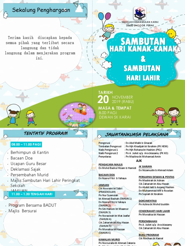 Tema Hari Kanak-Kanak 2019 - 9 november 2019 (sabtu) masa :. 9 november 2019 (sabtu) masa : Hari kokurikulum dan bulan sukan negara 2019. Sambutan hari kanak kanak sk merbau miri 2019. International children's day, icd) diraikan di banyak negara, biasanya pada 1 jun setiap tahun, tetapi tidak semestinya. 1 lihat pagi sudah terang, angin meniup pohon ilalang.
