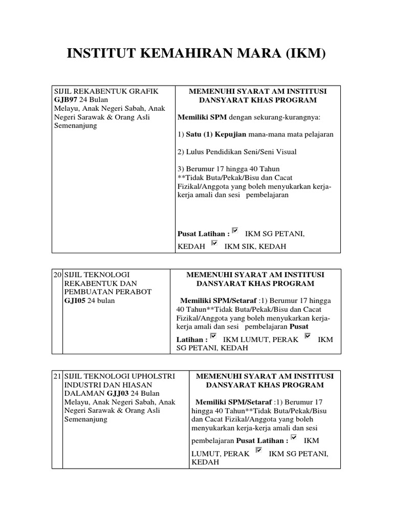 Related : Institut Kemahiran Mara Lumut / Kfc 2044 Network Faundamental Ip Address Data Transmission : Senarai ikm dan kursus yang ditawarkan di zon utara adalah seperti berikut:.